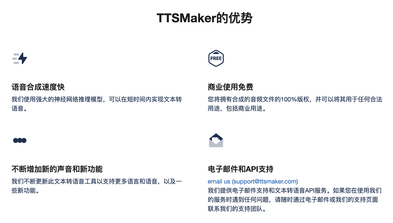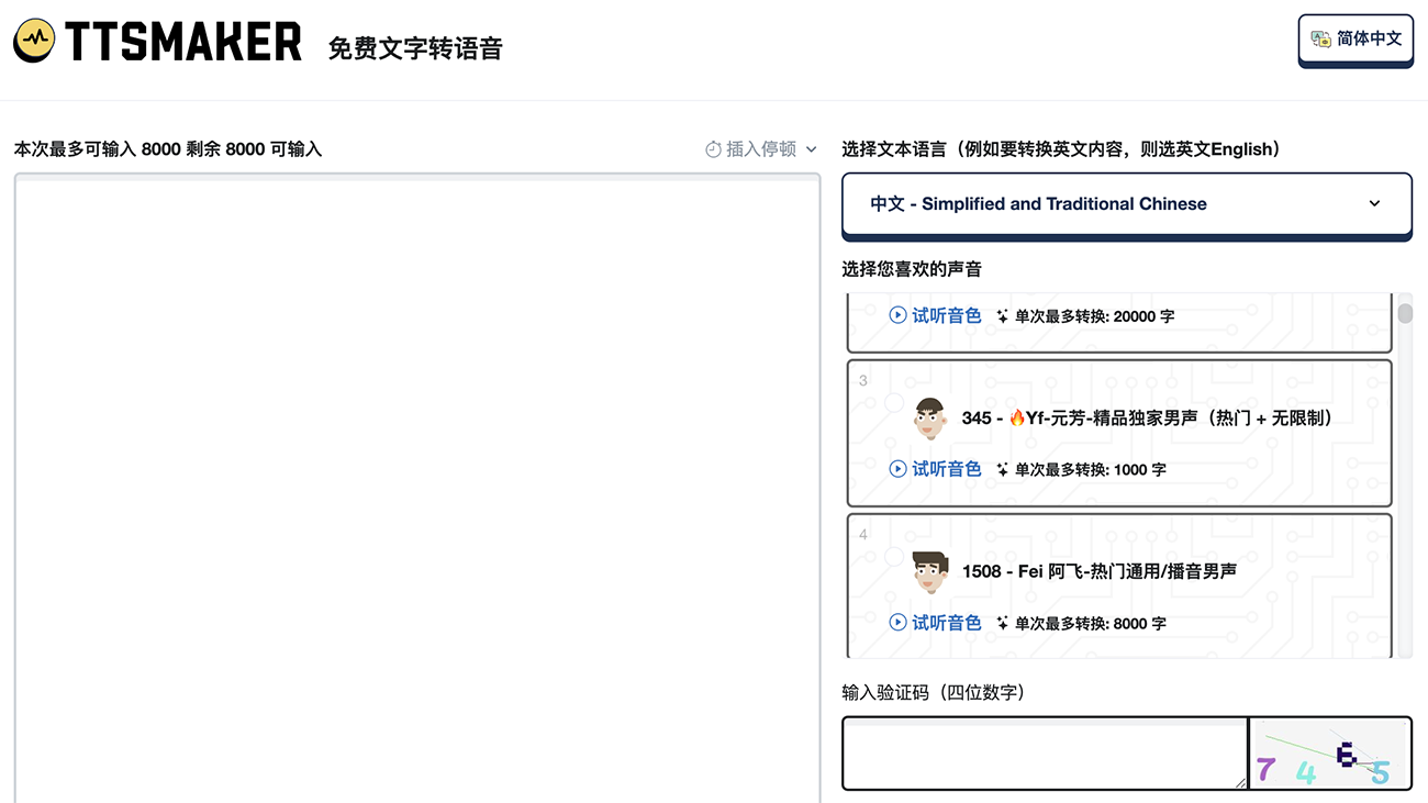TTSMaker是一款免费的文本转语音工具,提供语音合成服务,支持多种语言,包括英语、法语、德语、西班牙语、阿拉伯语、中文、日语、韩语、越南语等,以及多种语音风格。您可以用它大声朗读文本和电子书,或下载音频文件用于商业用途(完全免费)。作为一款优秀的免费 TTS 工具,TTSMaker 可以轻松地将文本在线转换为语音。