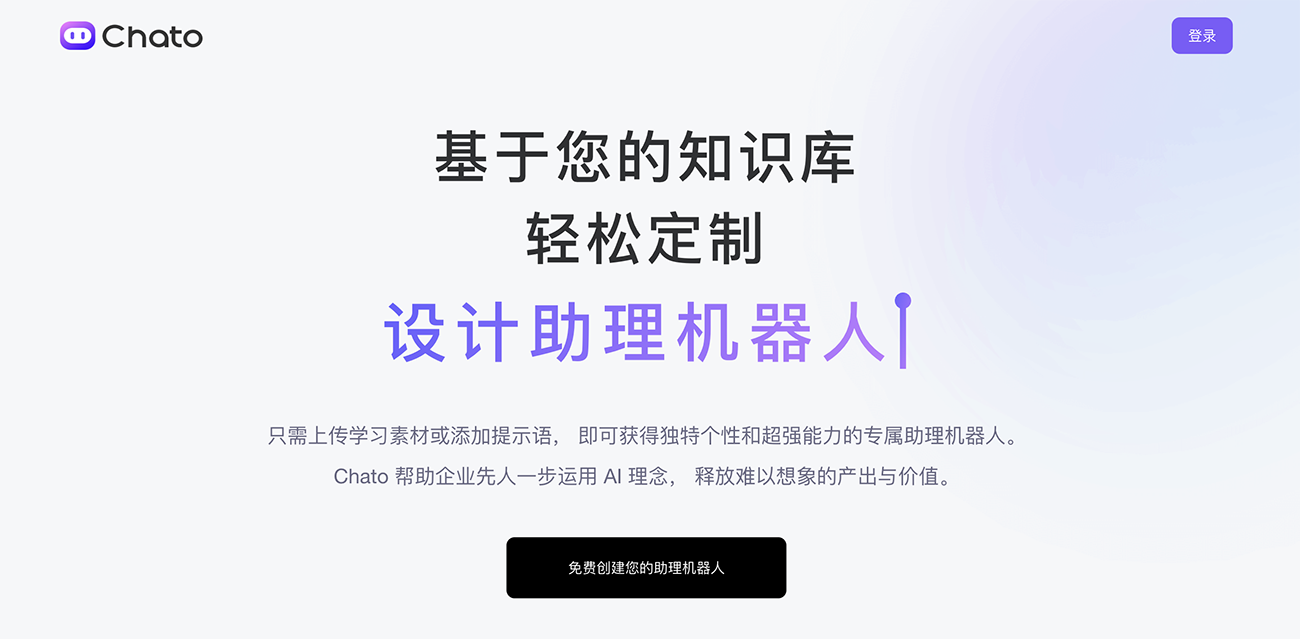 只需上传学习素材或添加提示语, 即可获得独特个性和超强能力的专属助理机器人。Chato 帮助企业先人一步运用 AI 理念, 释放难以想象的产出与价值。