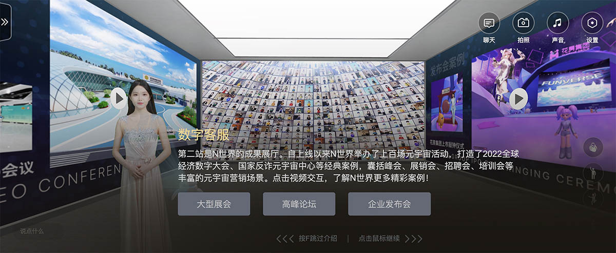 N世界是新一代元宇宙营销云,通过构建虚实融合的数字孪生互动营销空间,为企业提供元宇宙营销官网、虚拟发布会、数字展厅、行业展销会等数智化元宇宙营销解决方案。